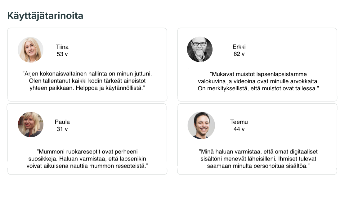 "Palveluun voit tallentaa kaikki tärkeät tietosi valokuvista mummon kakkureseptiin."